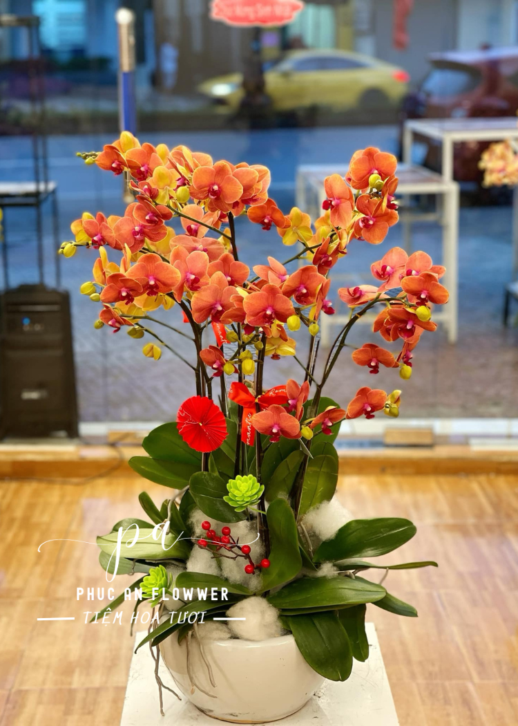 Lan hồ điệp cam tượng trưng cho sự may mắn, nhiệt huyết và thành công. Chậu hoa này rất phù hợp để trưng bày trong phòng khách, văn phòng, quầy lễ tân hoặc làm quà tặng ý nghĩa trong các dịp khai trương, tân gia và chúc mừng. Đây không chỉ là món quà sang trọng mà còn gửi gắm lời chúc về sự thịnh vượng, phát đạt và nhiều điều tốt đẹp.