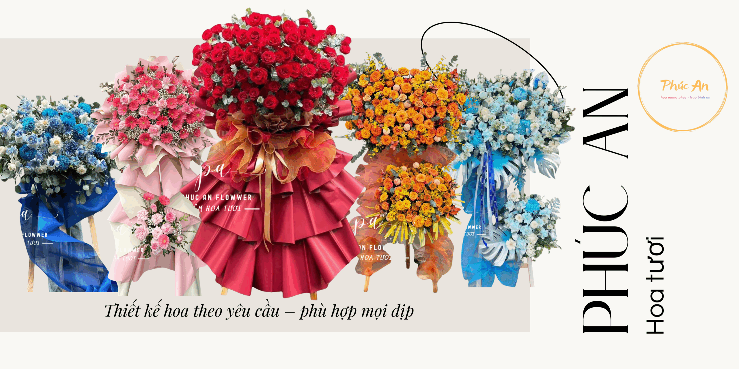 Phúc An bắt đầu từ một niềm tin rất dịu: rằng hoa có thể giữ hộ cảm xúc của con người. Có những điều quá yêu thương để nói thành lời, có những khoảnh khắc chỉ cần một ánh nhìn, một mùi hương, là đủ để trái tim rung lên. Phúc An ra đời giữa những buổi sáng yên tĩnh như thế—khi người ta chọn hoa không phải để bán, mà để gửi gắm. Mỗi bó hoa là một câu chuyện nhỏ được viết bằng màu sắc, bằng hương thơm, bằng những rung động rất thật. Phúc An không cố gắng trở nên rực rỡ nhất, chỉ mong trở thành nơi mà cảm xúc được đặt xuống một cách an yên.